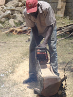 We didn’t visit Sister Pauline today because we had some business to attend to in Tala before school. The afternoon was quite busy because the construction crew is getting ready to pour the slab for the first floor. It was pretty neat watching them get the planks ready – they cut a tree down from the property, trim the bark off it with a chain saw and then cut individual planks. They are pretty accurate with the cuts, but watching them actually making the planks is amazing! They plan on pouring the cement tomorrow and get it formed for the first floor. It’s going to be exciting to see it go up! Thanks to all of you for making this possible! God is working here in Tala and not only us, but everyone around can see it!
