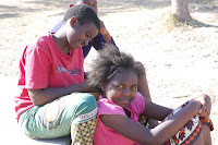 Another wonderful weekend. We played all afternoon on Saturday with the kids. This guy, Nicholas, fell asleep outside the window where the music was. The ground isn’t a preferable pillow, but who can argue with a kid and where he wants to fall asleep! Then Milkah was getting her hair undone and ready to be washed and plaited. I helped undo it and it’s a job! You use a thorn from the bushes and slowly undo the braids. But then she had big hair and we teased her all afternoon! She makes me feel at home because she’s the only one around here who gets sarcasm and can give it right back. Chuck had a little powwow with the boys, so with this picture I also got the progress of the building. They are getting it ready to pour the cement next week. Then we prepared for movie night. We watched Shrek and they all loved it. But they are asking for another movie like the “Sassy” movie (Homeward Bound). I do have one so maybe next Saturday. This week we had sodas and chips for a change instead of popcorn. The projector is working great! And now they anticipate a movie every Saturday night. I’m not sure what will happen when we leave; I guess I’ll try to teach someone how to plug everything in in the right order. With the power converter and everything it’s a little more involved than just plugging stuff in.