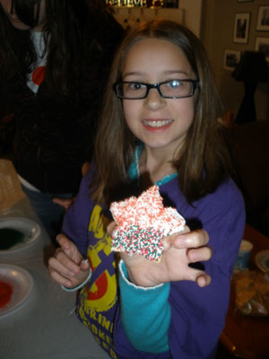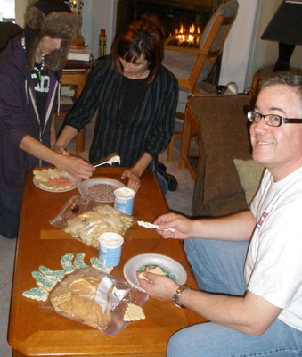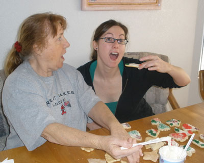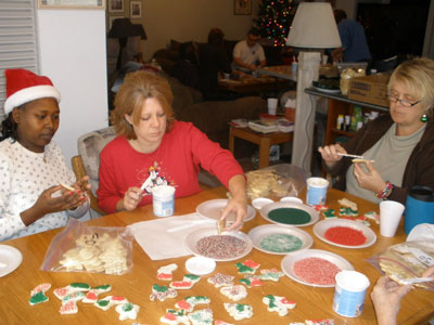 Approximately 800 cookies were baked by my youngest daughter, Amanda, then several volunteers came to the house to decorate them on Christmas Eve (with a few “test” cookies to make sure they tasted ok!).